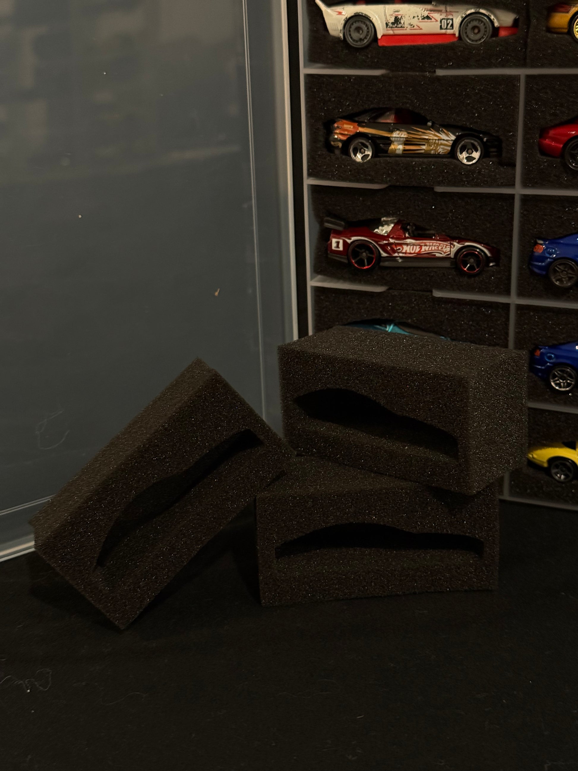 This 48-piece foam insert set is designed to fit a standard car storage case, providing individual foam slots to safely hold 48 loose die-cast cars. Each foam piece helps prevent movement, scratches, and paint damage during storage or transport. Ideal for collectors and resellers looking to upgrade or replace worn foam inserts.